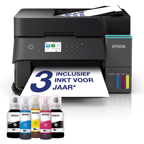 Epson All-in-one Printer ET-3950. Multifunctionele A4 printer met lcd scherm, dubbelzijdig printen, scannen en kopiëren. Uitzonderlijk goedkoop printen. Bespaar tot 95% op uw printkosten*. Printen zonder cartridges, gebruikersvriendelijk, eenvoudig en snel te vullen inkttanksysteem. 3 jaar garantie.